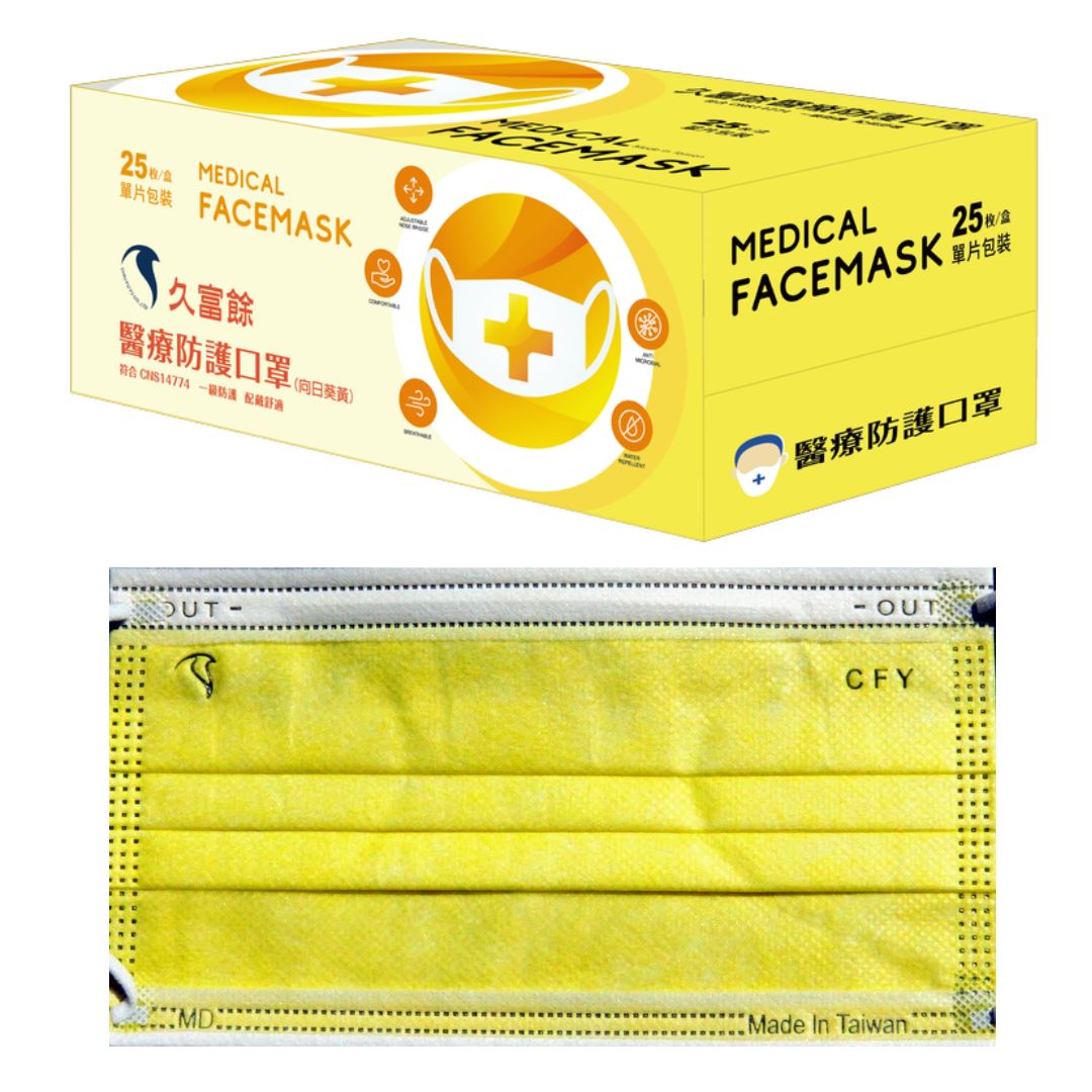 久富餘成人平面醫用口罩25片/盒∣向日葵黃