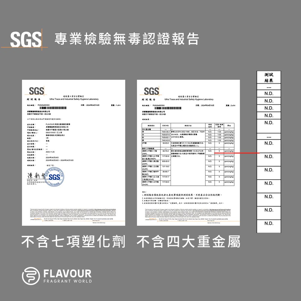 ◆ SGS檢驗證明:不含七項塑化劑與四大重金屬