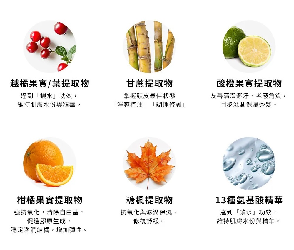 ◆ 酸橙果實提取物添加,友善清潔髒汙、老廢角質,同步滋潤保濕肌膚