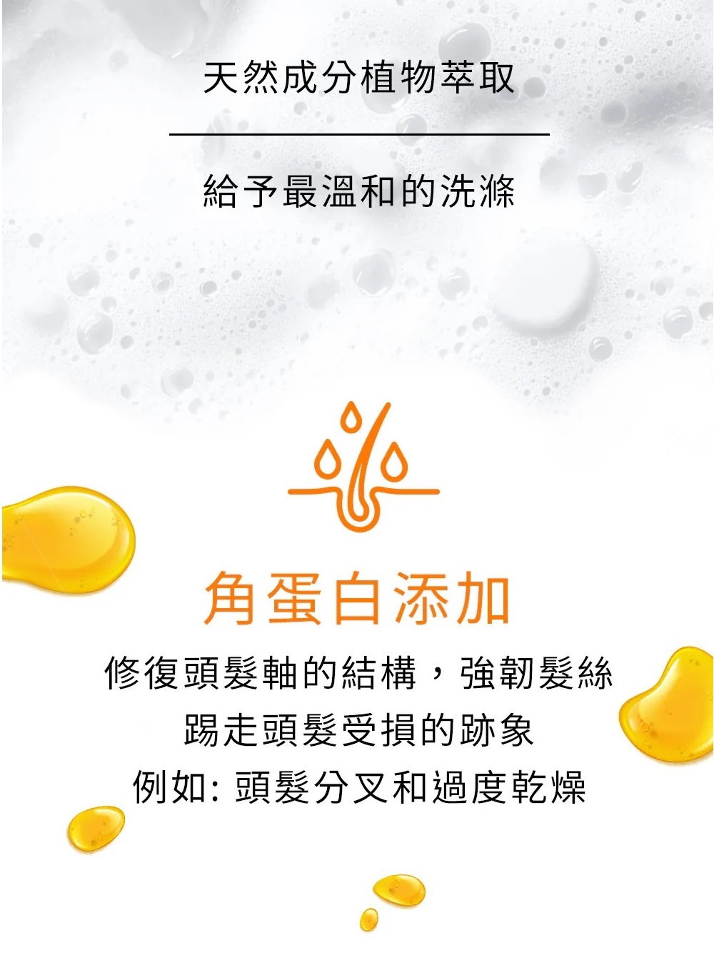 ◆ 角蛋白添加,修復頭髮軸的結構,強韌髮絲,踢走頭髮受損的跡象,如頭髮分叉和過度乾燥