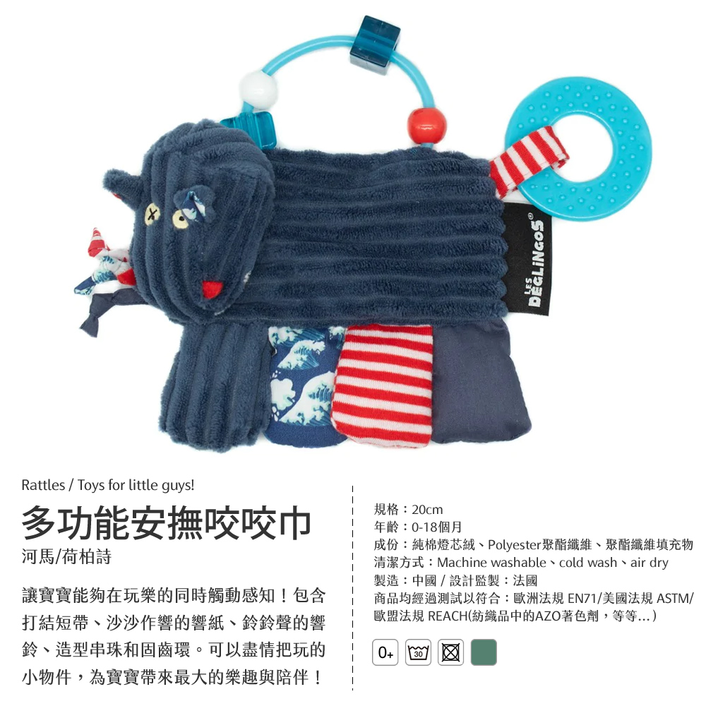 法國Les Deglingos-多功能安撫咬咬巾 (河馬/荷柏詩)